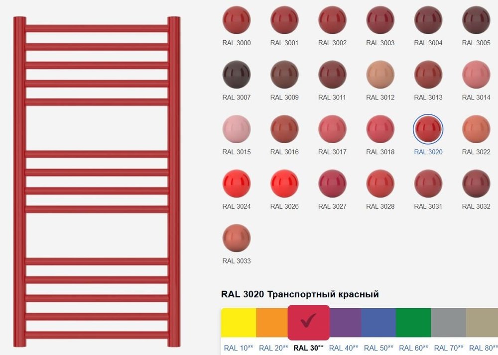 Полотенцесушитель водяной Сунержа Аркус 3020-0251-8050, высота 80 см, ширина 50 см, универсальное подключение, цвет транспортный красный