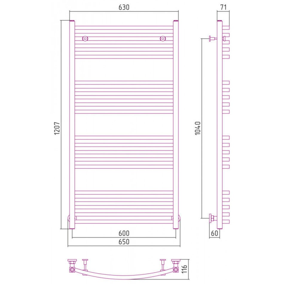 Полотенцесушитель водяной Сунержа Аркус, высота 120 см, ширина 60 см, цвет матовое золото, 032-0251-1260