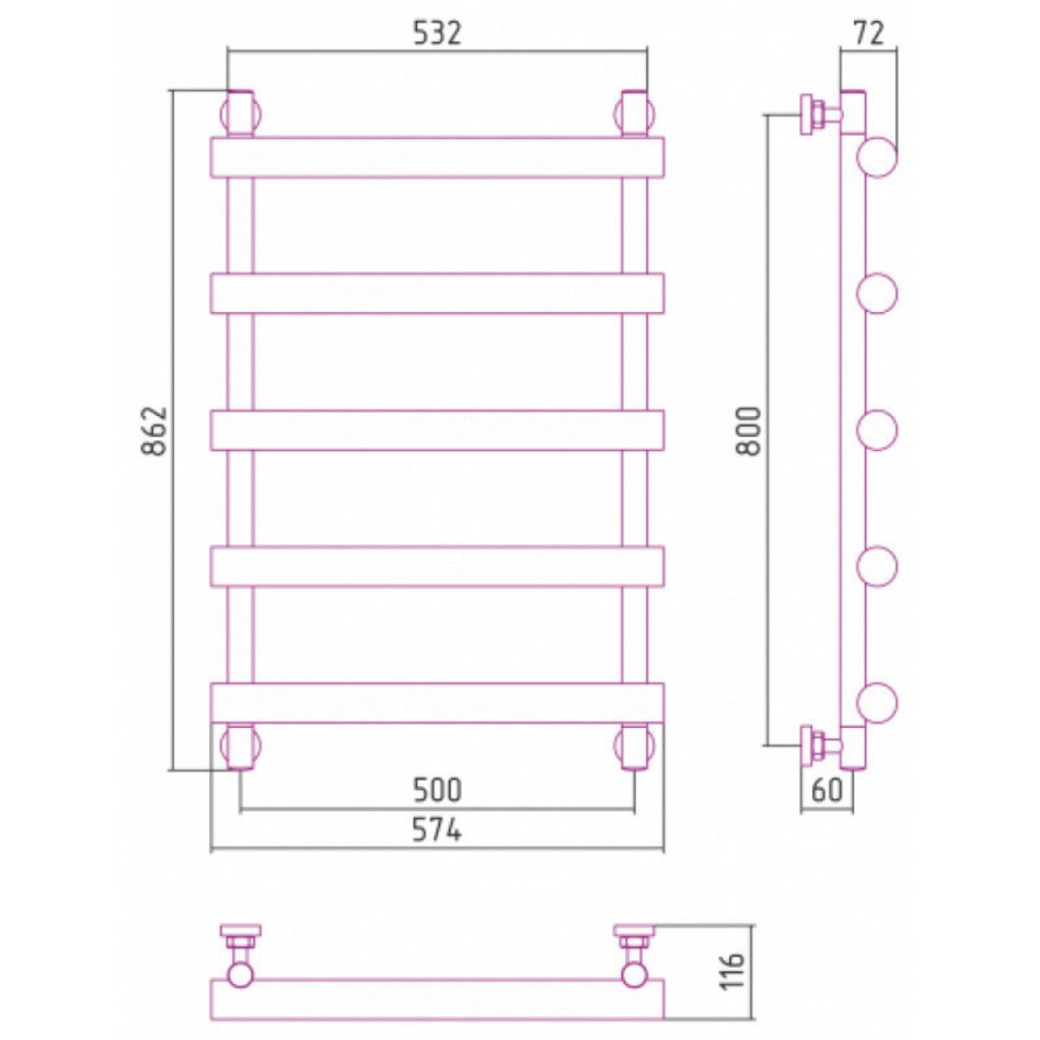 Полотенцесушитель водяной Сунержа Атлант 12-0226-8050, высота 80 см, ширина 50 см, универсальное подключение, цвет белый