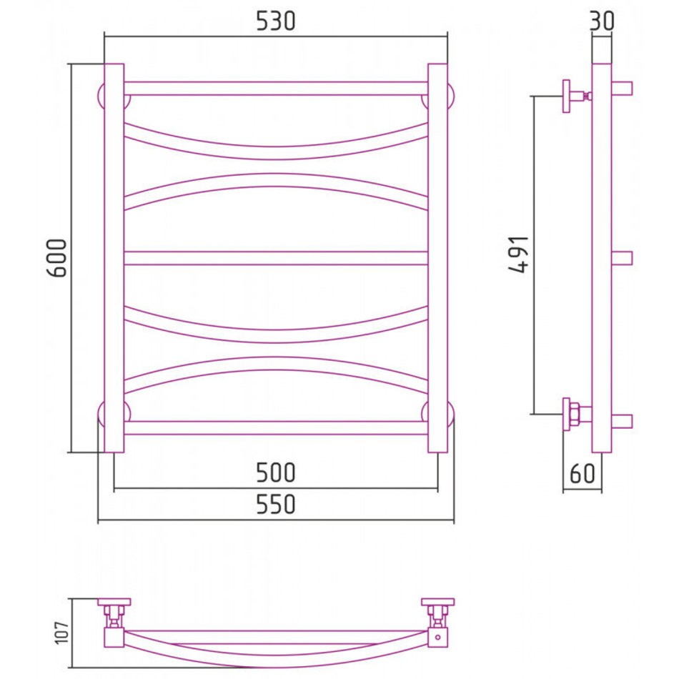 Полотенцесушитель водяной Сунержа Ажур 12-0255-6050, высота 60 см, ширина 50 см, нижнее подключение 50 см, цвет белый