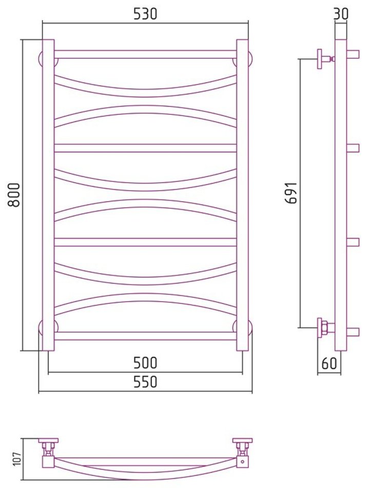 Полотенцесушитель водяной Сунержа Ажур, ширина 50 см высота 80 см, нижнее подключение, хром, 00-0255-8050