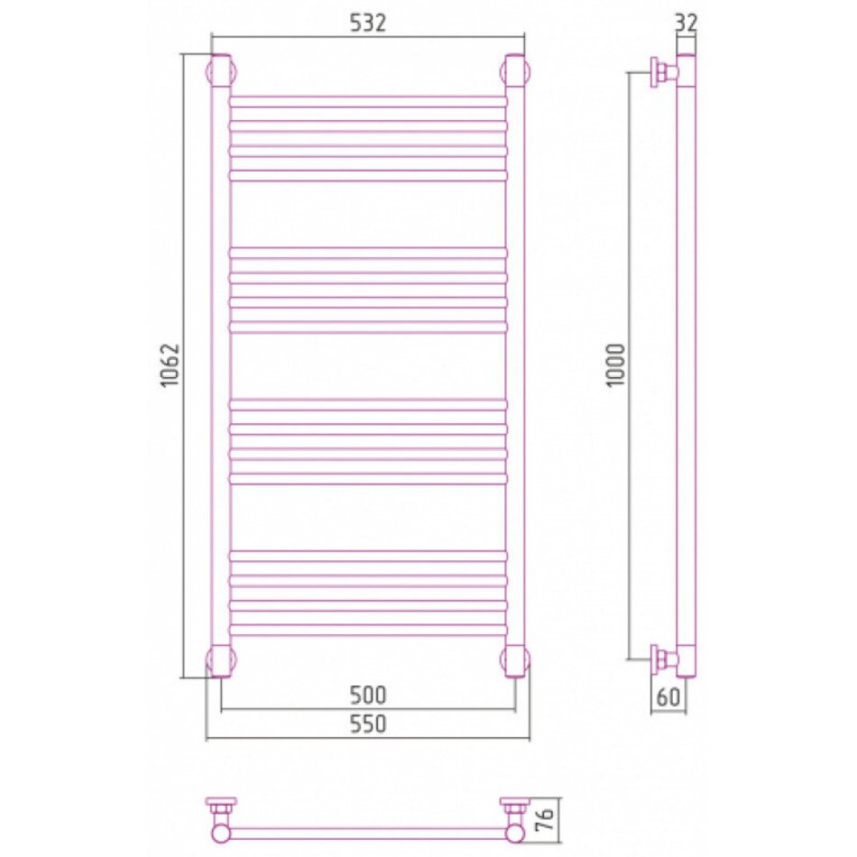 Полотенцесушитель водяной Сунержа Богема+ 071-0220-1050, высота 100 см, ширина 50 см, универсальное подключение, цвет сатин