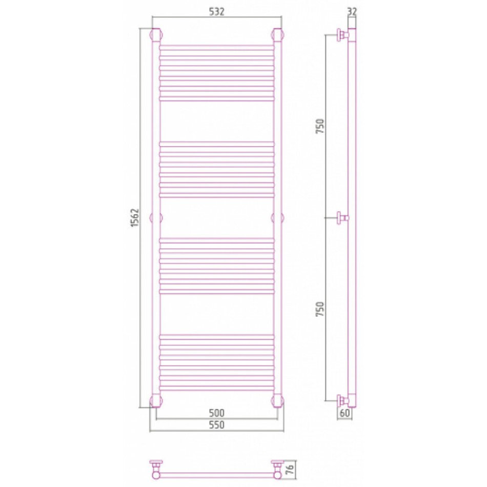 Полотенцесушитель водяной Сунержа Богема+ 071-0220-1550, высота 150 см, ширина 50 см, универсальное подключение, цвет сатин