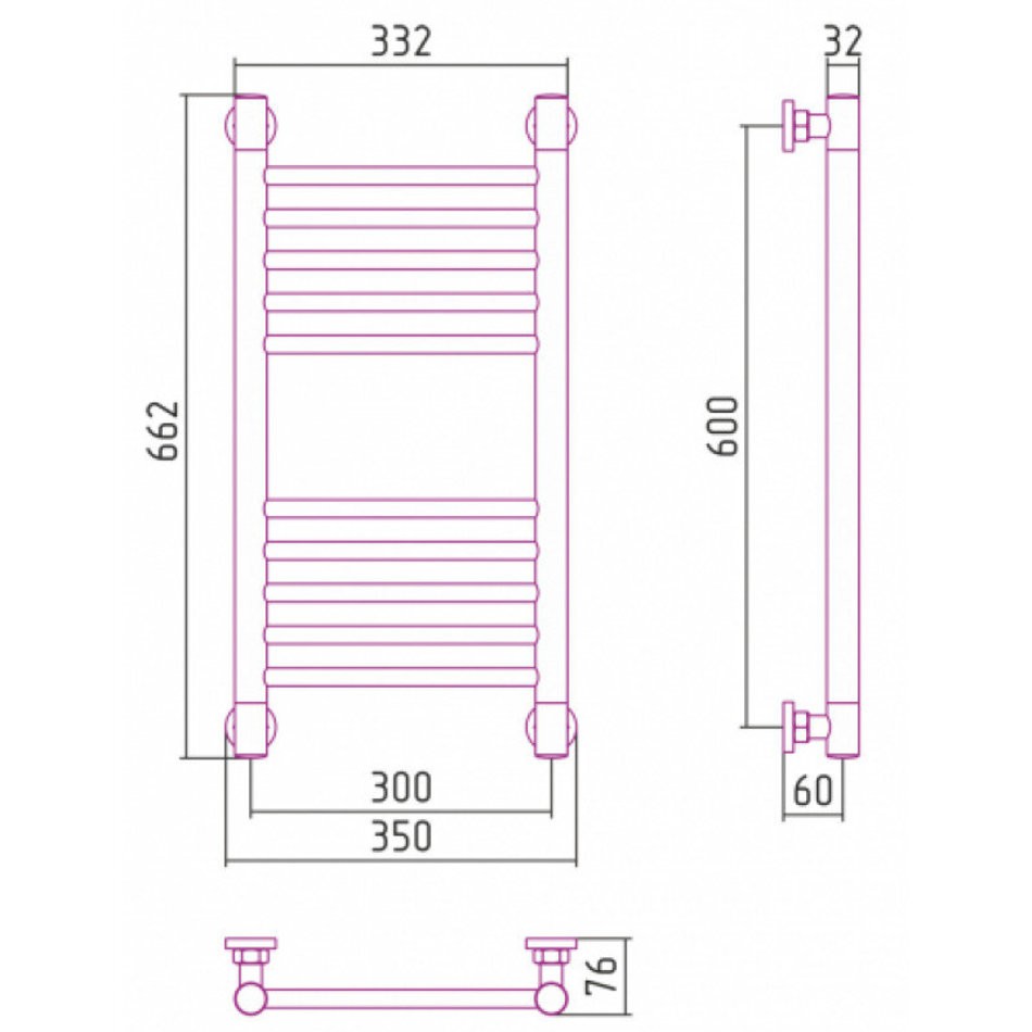 Полотенцесушитель водяной Сунержа Богема+ 071-0220-6030, высота 60 см, ширина 30 см, универсальное подключение, цвет сатин
