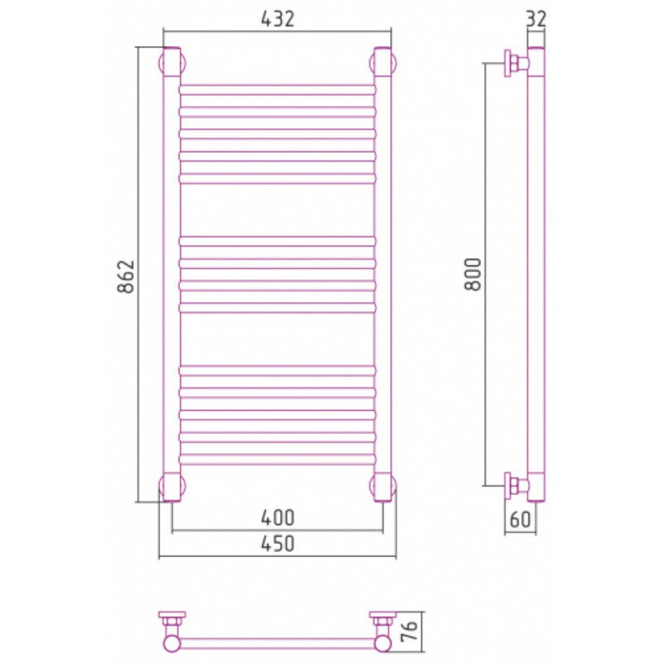 Полотенцесушитель водяной Сунержа Богема+ 071-0220-8040, высота 80 см, ширина 40 см, универсальное подключение, цвет сатин