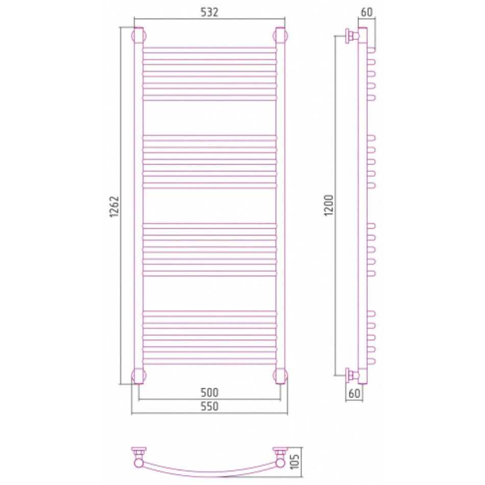 Полотенцесушитель водяной Сунержа Богема+ 071-0221-1250, высота 120 см, ширина 50 см, универсальное подключение, цвет белый