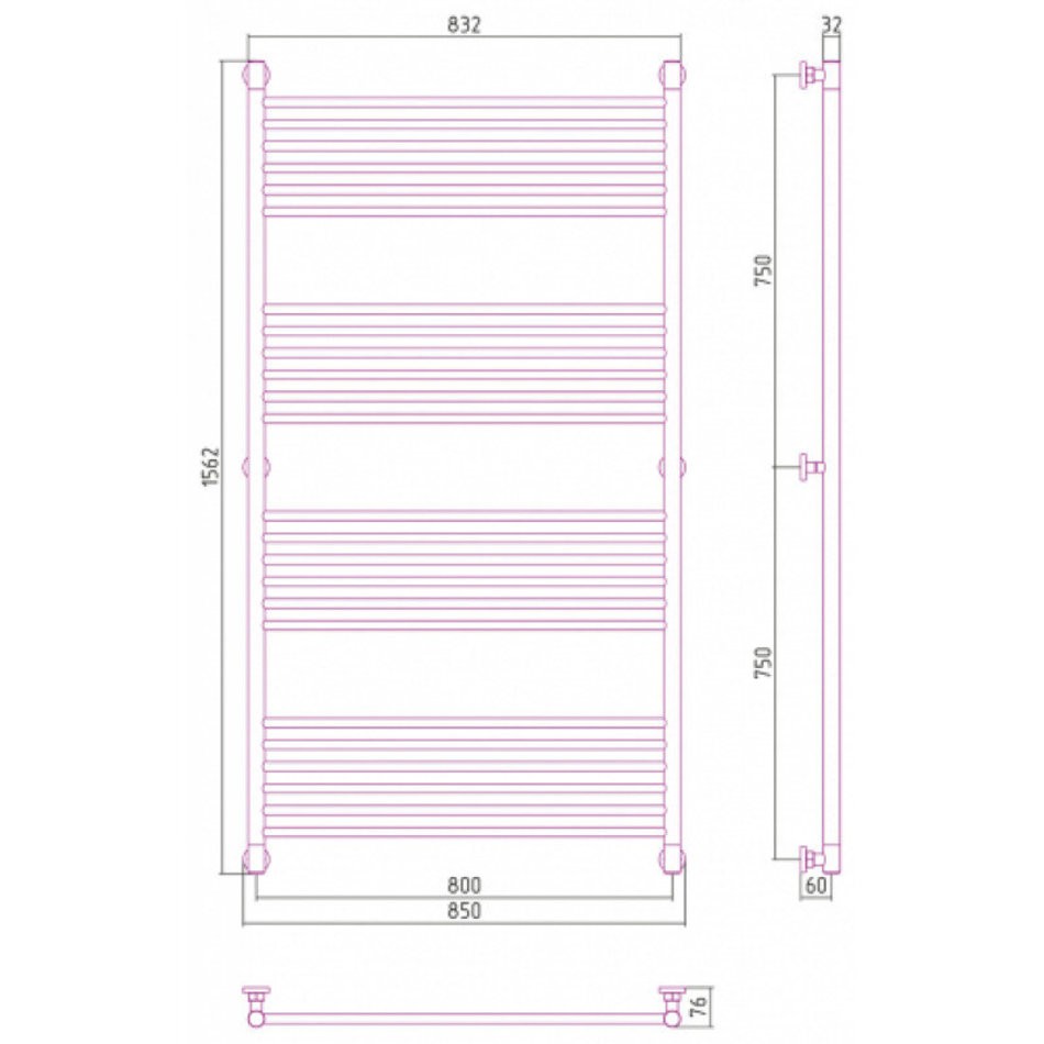 Полотенцесушитель водяной Сунержа Богема+ 12-0220-1580, высота 150 см, ширина 80 см, универсальное подключение, цвет белый