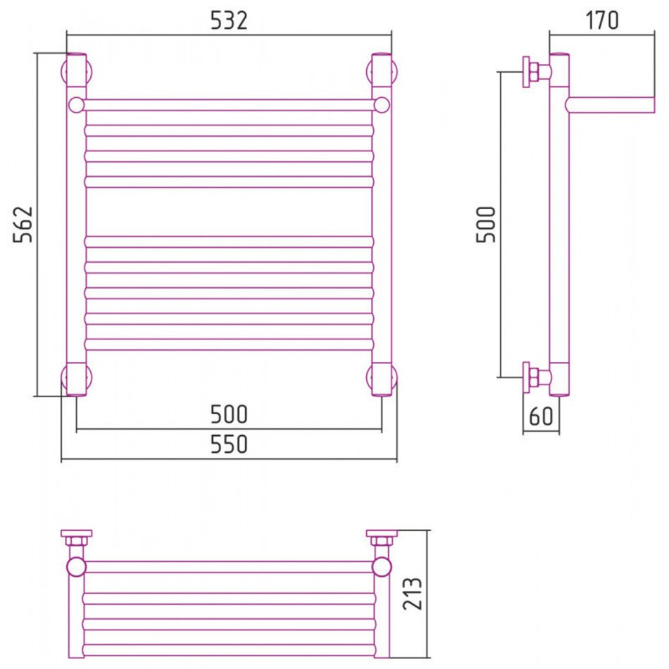 Полотенцесушитель водяной Сунержа Богема+ 12-0223-5050, высота 50 см, ширина 50 см, универсальное подключение, с полкой, цвет белый