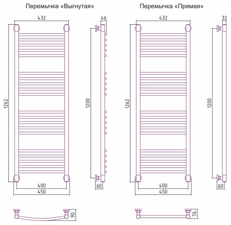 Полотенцесушитель водяной Сунержа Богема+ 120 x 40 см, 00-0220-1240, прямые перемычки, хром