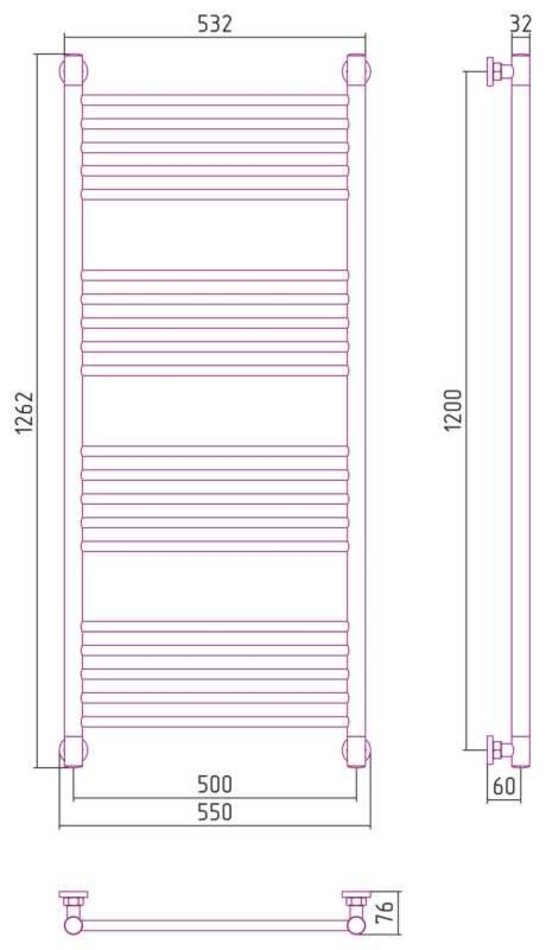 Полотенцесушитель водяной Сунержа Богема+ 1200х500, ширина 55 см, высота 126.2 см, черный матовый, 31-0220-1250