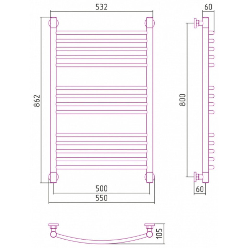 Полотенцесушитель водяной Сунержа Богема+ 15-0221-8050, высота 80 см, ширина 50 см, универсальное подключение, цвет тёмный титан муар