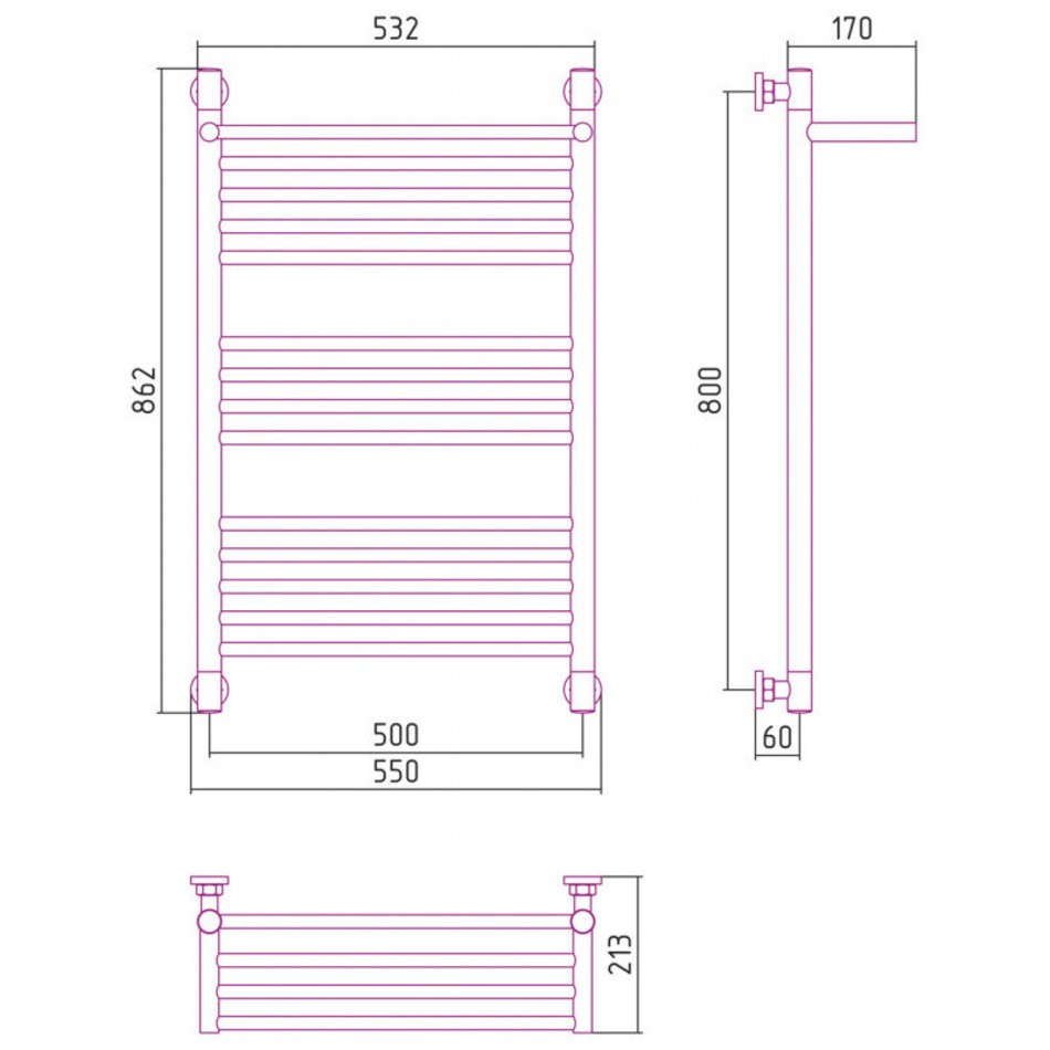 Полотенцесушитель водяной Сунержа Богема+ 15-0223-8050, высота 80 см, ширина 50 см, универсальное подключение, с полкой, цвет тёмный титан муар