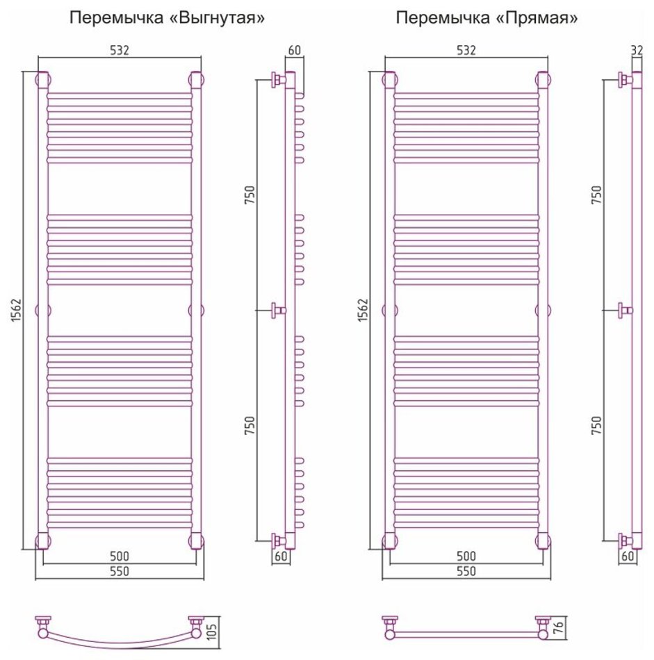 Полотенцесушитель водяной Сунержа Богема+ 150 x 50 см, 00-0220-1550, прямые перемычки, хром