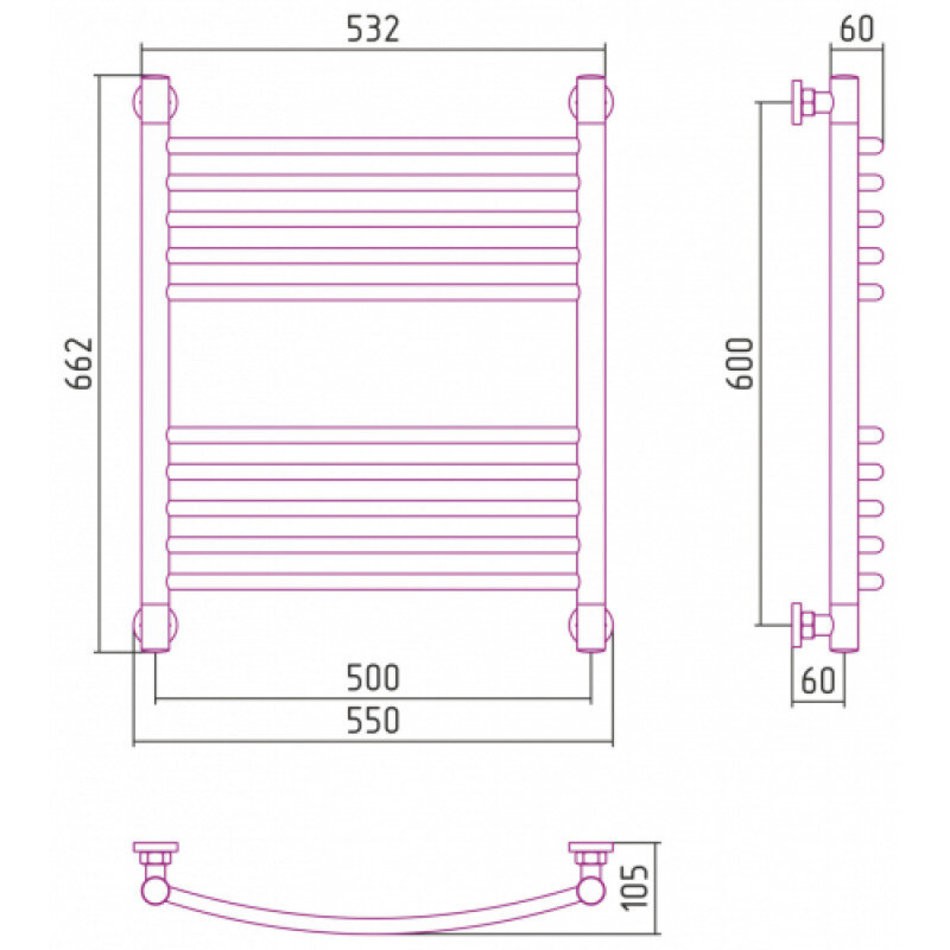 Полотенцесушитель водяной Сунержа Богема+ 30-0221-6050, высота 60 см, ширина 50 см, универсальное подключение, цвет матовый белый