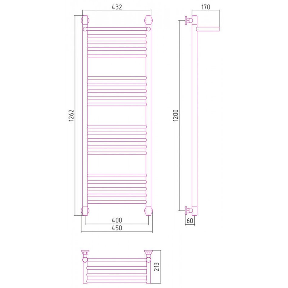 Полотенцесушитель водяной Сунержа Богема+ 30-0223-1240, высота 120 см, ширина 40 см, универсальное подключение, с полкой, цвет матовый белый
