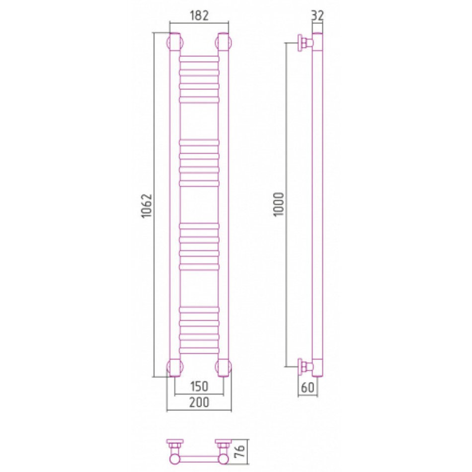 Полотенцесушитель водяной Сунержа Богема+ 31-0220-1015, высота 100 см, ширина 15 см, универсальное подключение, цвет матовый черный