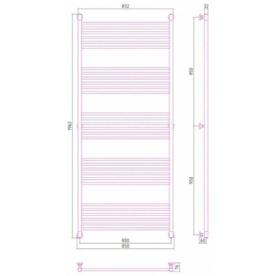 Полотенцесушитель водяной Сунержа Богема+ 31-0220-1980, высота 190 см, ширина 80 см, универсальное подключение, цвет матовый черный