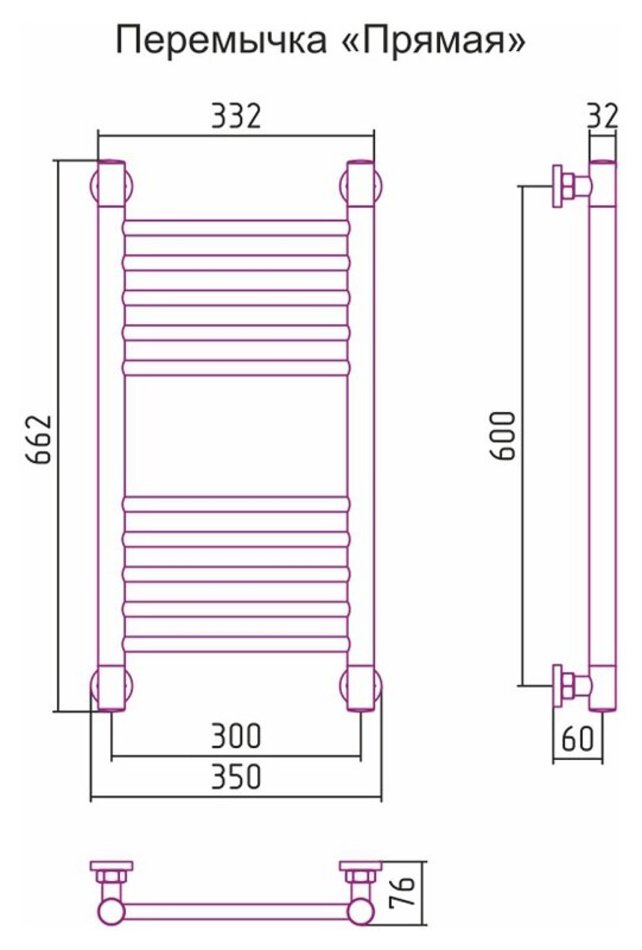 Полотенцесушитель водяной Сунержа Богема+ 60 x 30 см, 00-0220-6030, прямые перемычки, хром