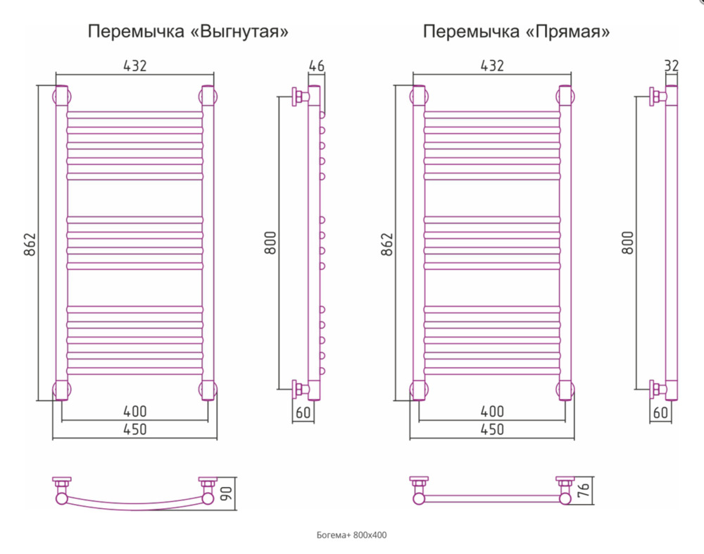 Полотенцесушитель водяной Сунержа Богема+ 800x400, хром