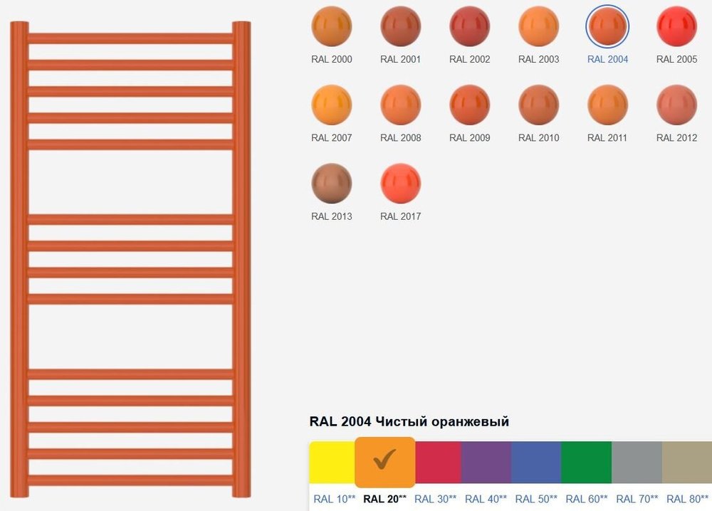Полотенцесушитель водяной Сунержа Богема L 2004-0202-6090, ширина 90 см высота 60 см, универсальное подключение, цвет чистый оранжевый