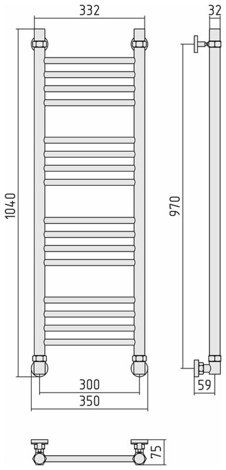 Полотенцесушитель водяной Сунержа Богема прямая, 17-0102-1030, ширина 30 см, высота 100 см, черный