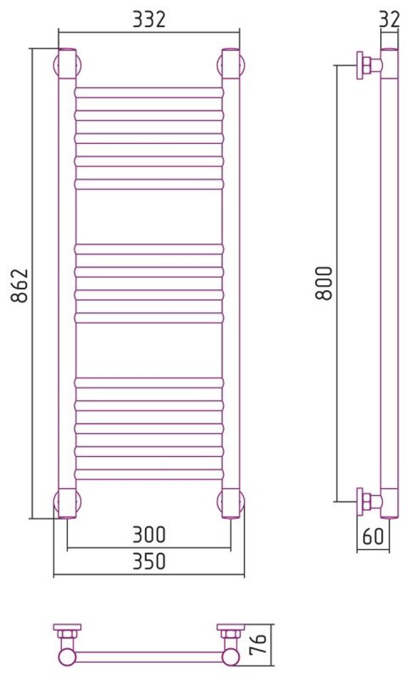 Полотенцесушитель водяной Сунержа Богема+ прямая, ширина 30 см высота 80 см, универсальное подключение, хром, 00-0220-8030