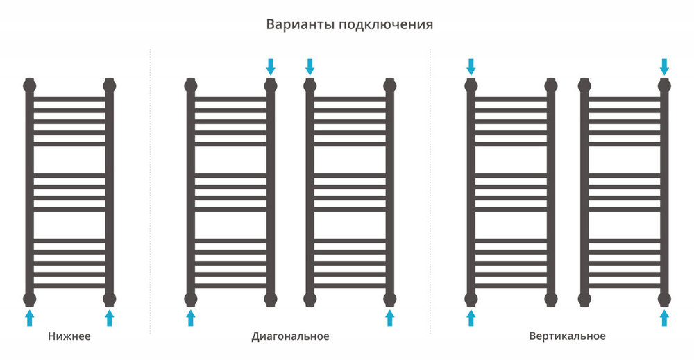 - Межосевое расстояние: для бокового подключения - 80 см, нижнее подключение - 30 см
