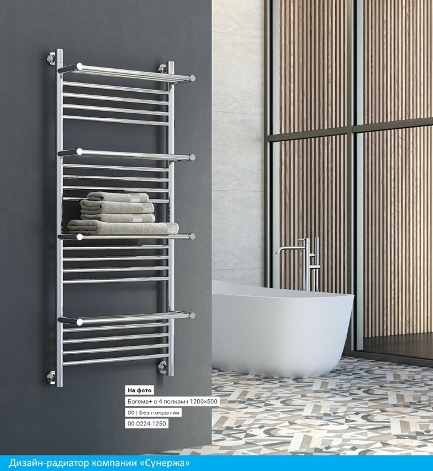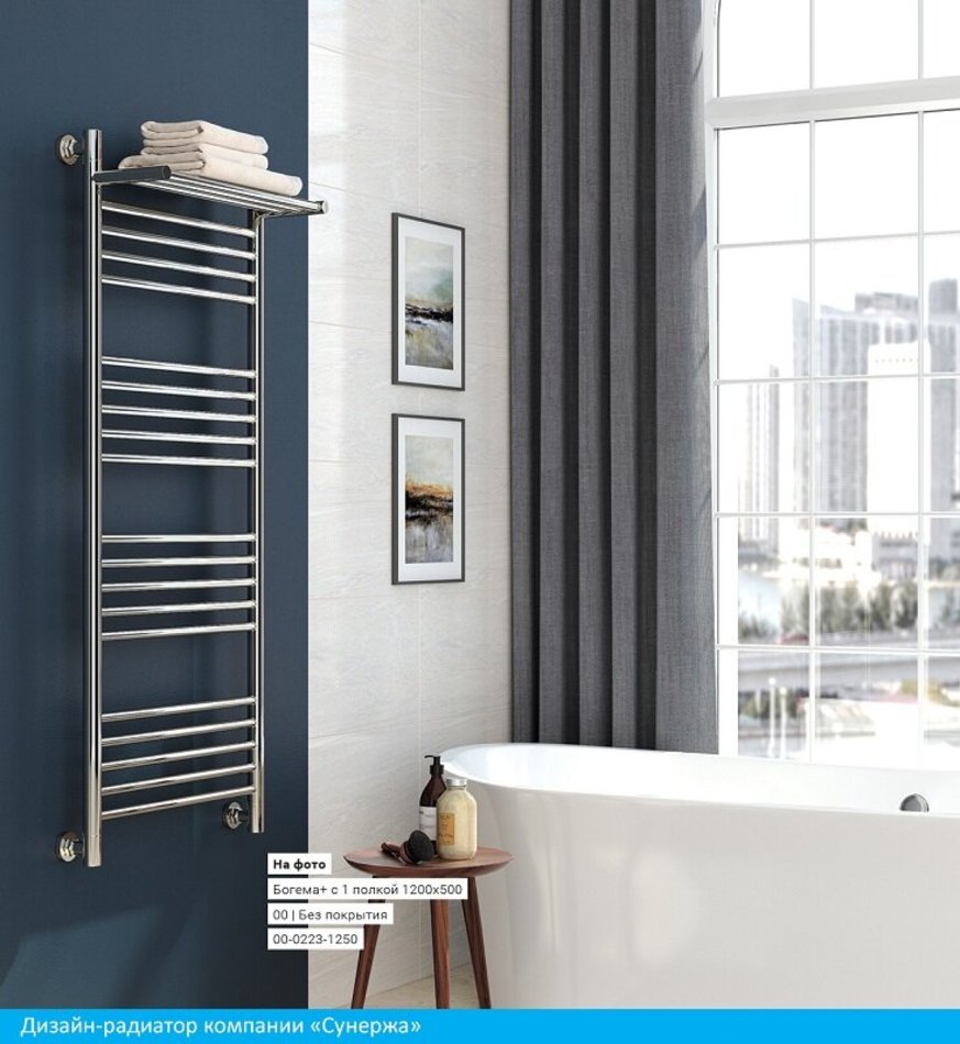 Полотенцесушитель водяной Сунержа Богема с полкой+ 100 x 50 см, 00-0223-1050, хром