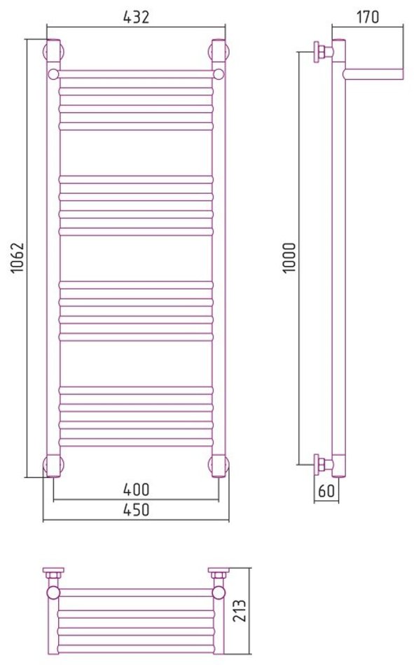 Полотенцесушитель водяной Сунержа Богема с полкой+, ширина 40 см высота 100 см, универсальное подключение, хром, 00-0223-1040