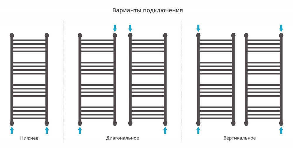 - Межосевое расстояние: для бокового подключения - 100 см, нижнее подключение - 40 см