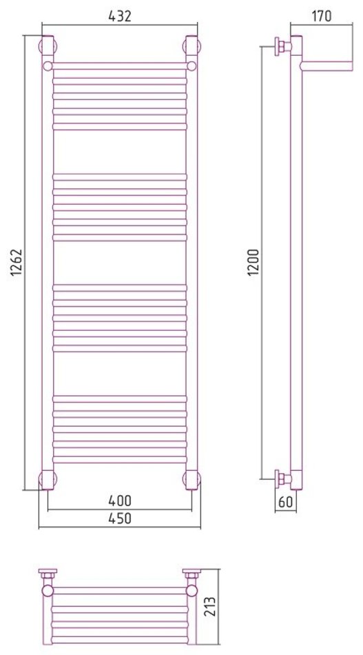 - Межосевое расстояние: для бокового подключения - 120 см, нижнее подключение - 40 см