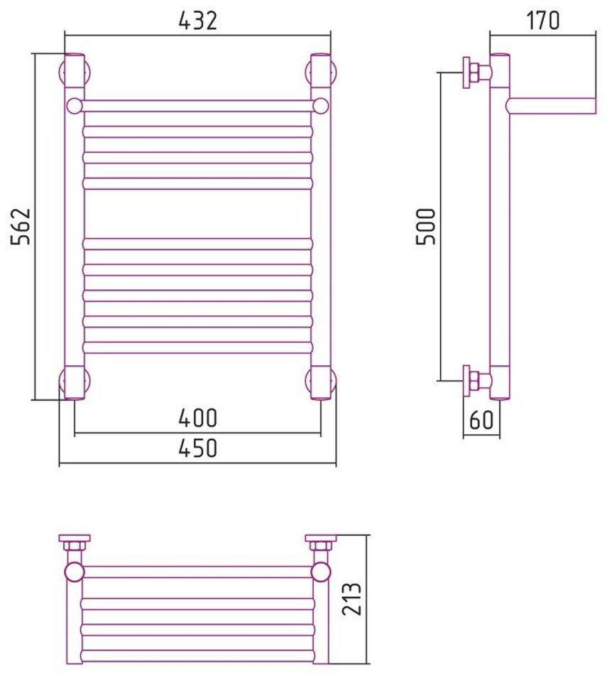- Межосевое расстояние: для бокового подключения - 50 см, нижнее подключение - 40 см