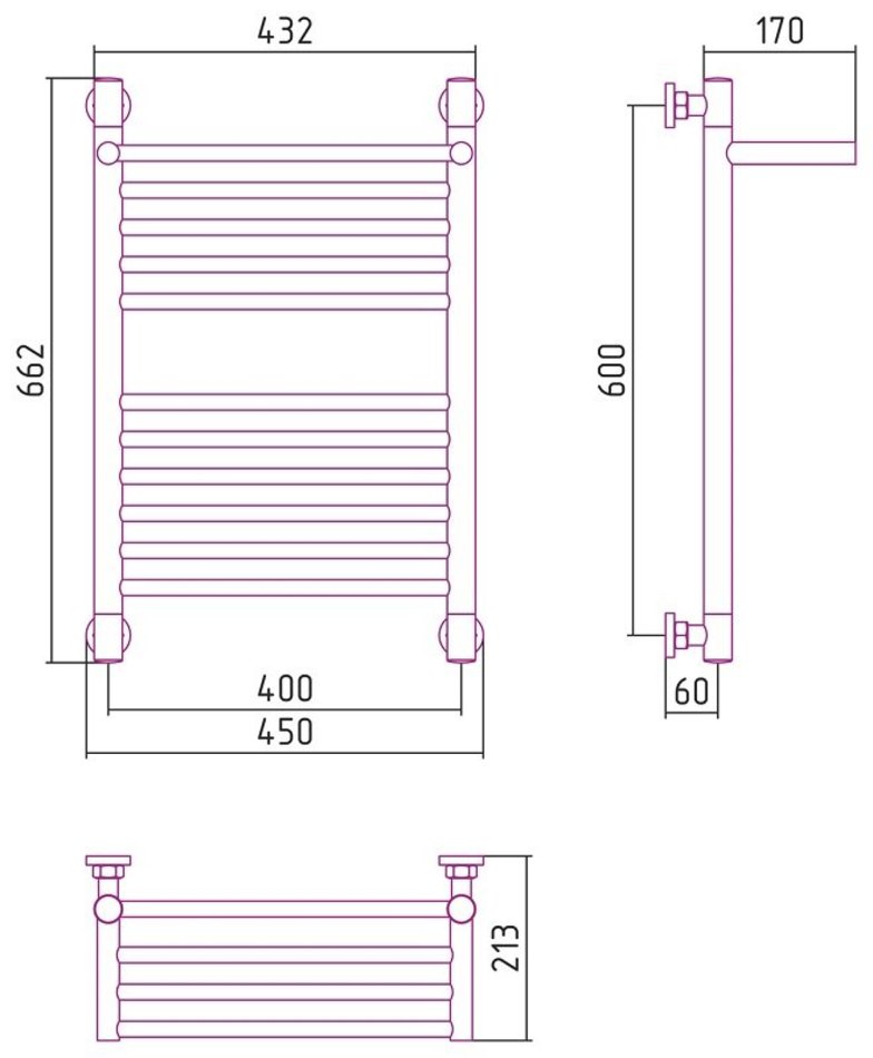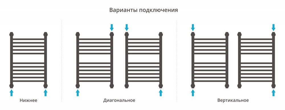 - Межосевое расстояние: для бокового подключения - 60 см, нижнее подключение - 40 см
