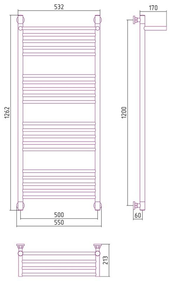 Полотенцесушитель водяной Сунержа Богема с полкой+, ширина 50 см высота 120 см, универсальное подключение, хром, 00-0223-1250