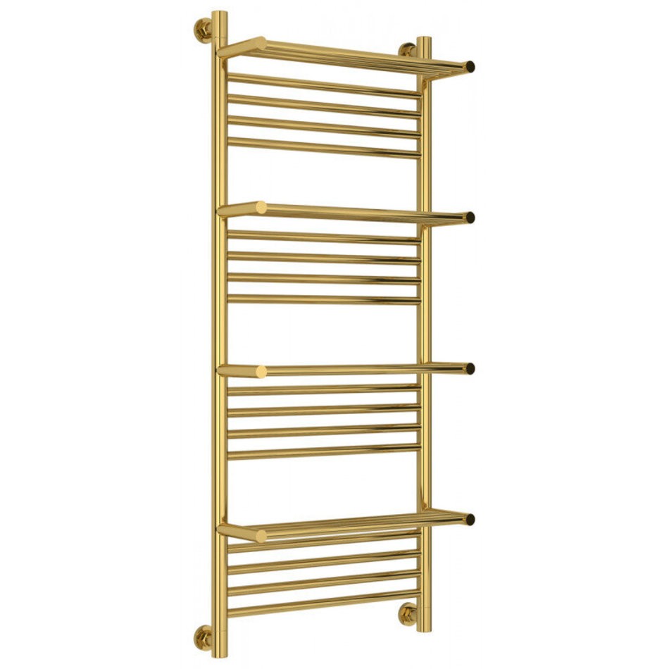 Полотенцесушитель водяной Сунержа Богема+, ширина 50 см, высота 120 см, нижнее подключение, с полками, цвет золото, 03-0224-1250