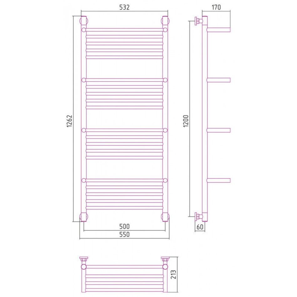 Полотенцесушитель водяной Сунержа Богема+, ширина 50 см, высота 120 см, универсальное подключение, 4 полки, цвет состаренная бронза, 05-0224-1250