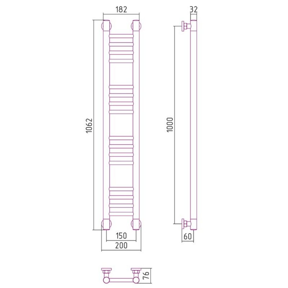 Полотенцесушитель водяной Сунержа Богема+, высота 100 см, ширина 15 см, цвет шампань, 020-0220-1015