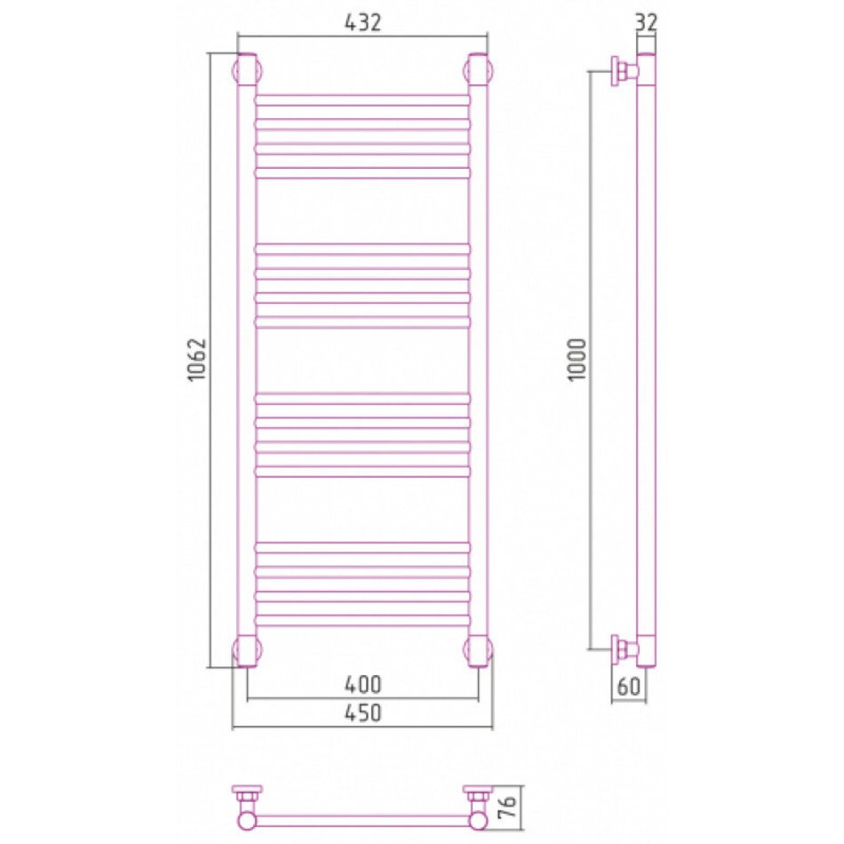 Полотенцесушитель водяной Сунержа Богема+, высота 100 см, ширина 40 см, универсальное подключение, цвет матовая шампань, 022-0220-1040