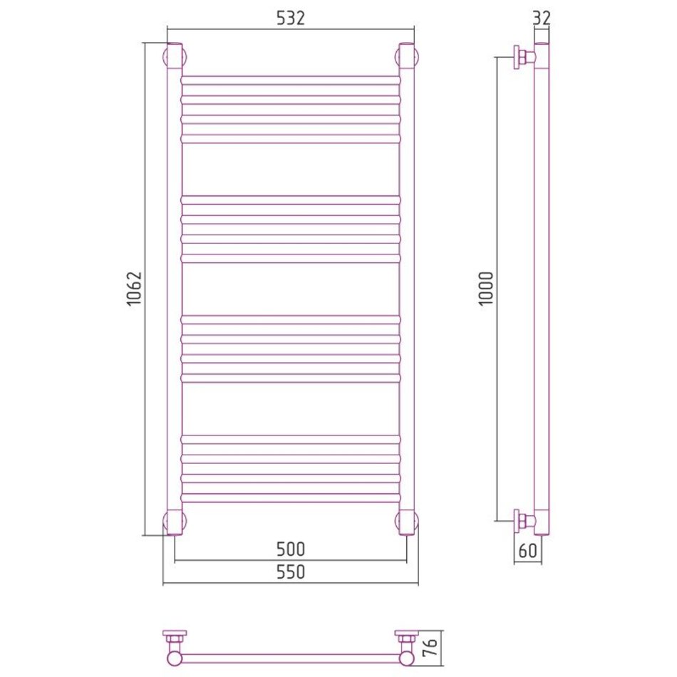 Полотенцесушитель водяной Сунержа Богема+, высота 100 см, ширина 50 см, цвет шампань, 020-0220-1050
