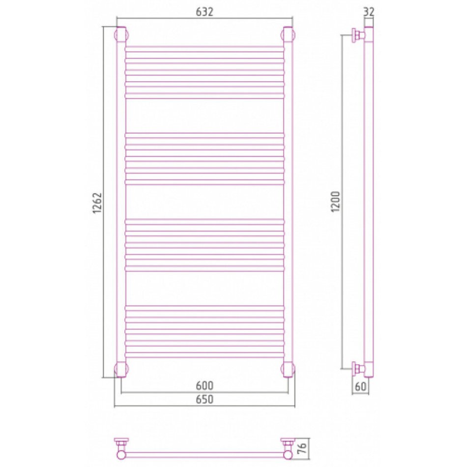 Полотенцесушитель водяной Сунержа Богема+, высота 120 см, ширина 60 см, универсальное подключение, цвет золото, 03-0220-1260