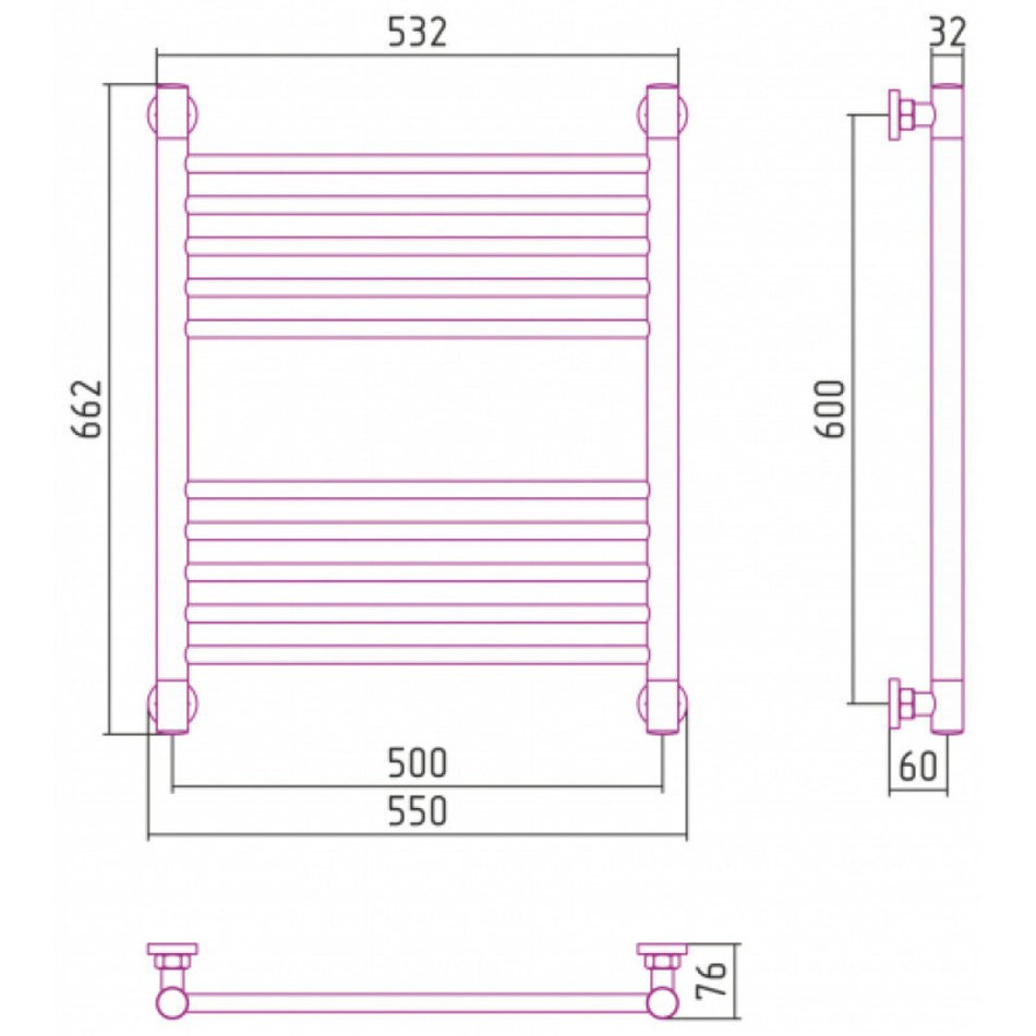 Полотенцесушитель водяной Сунержа Богема+, высота 60 см, ширина 50 см, цвет матовое золото, 032-0220-6050