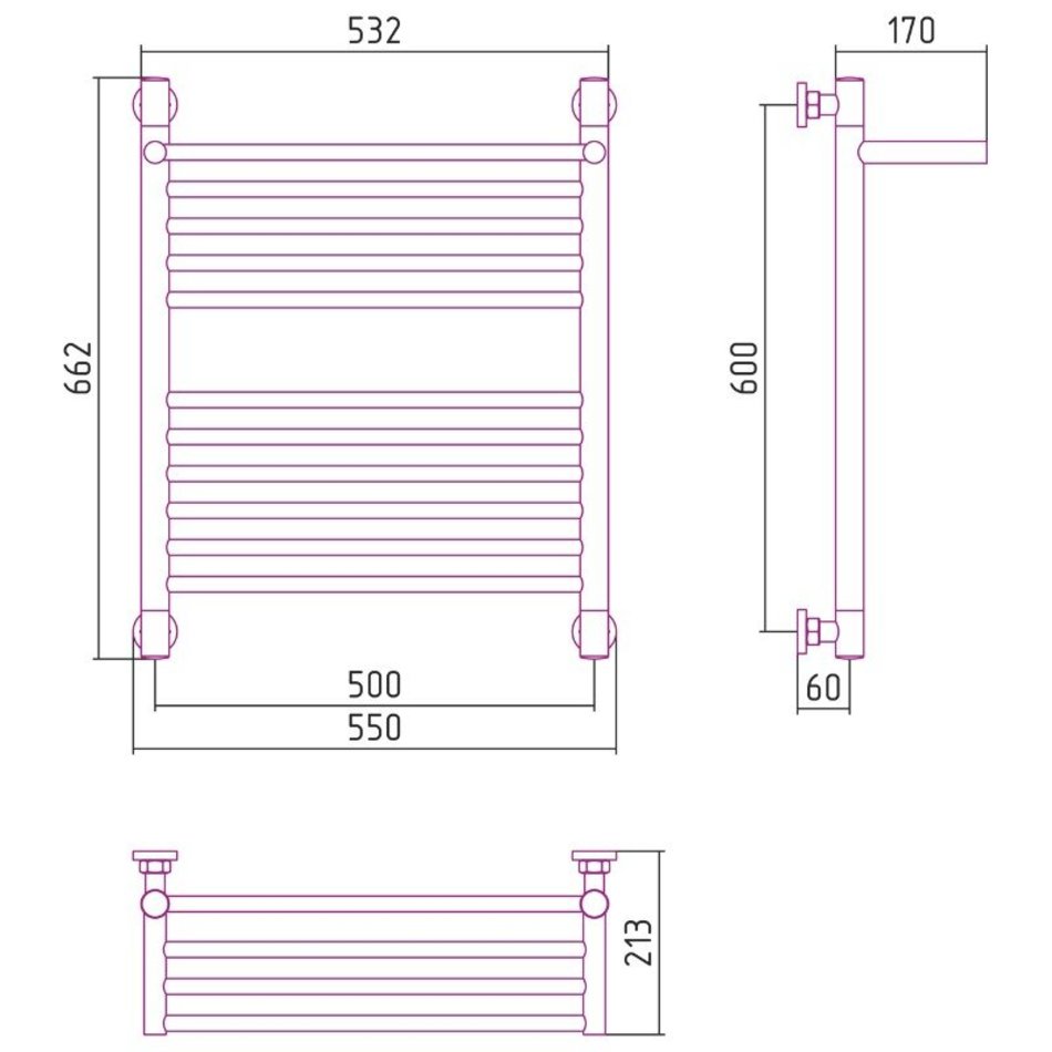 Полотенцесушитель водяной Сунержа Богема+, высота 60 см, ширина 50 см, с полкой, цвет шампань, 020-0223-6050