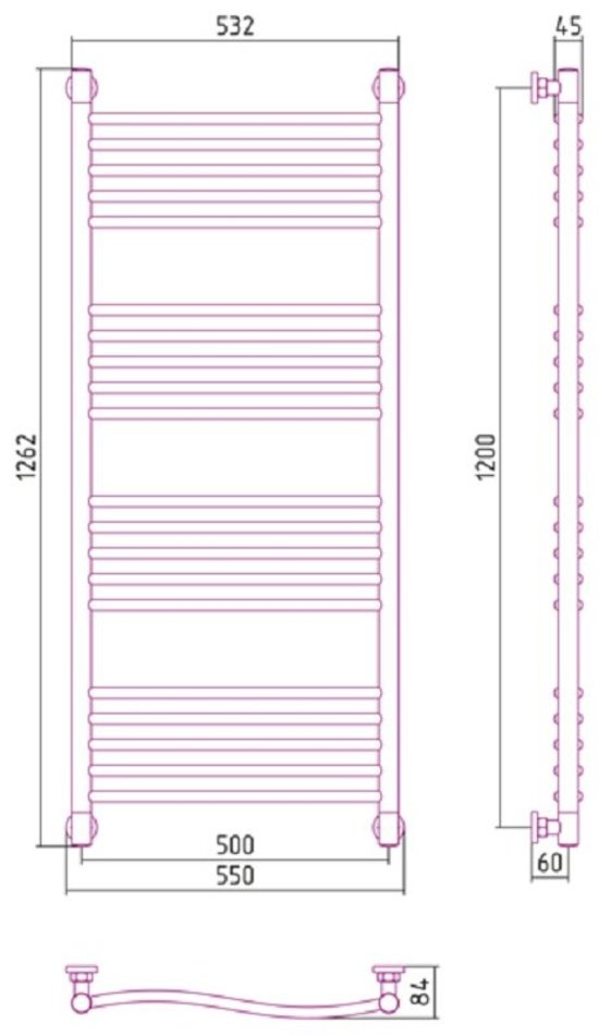 - Внешние габариты (высота х ширина х глубина) (мм) 1262 х 550 х 84