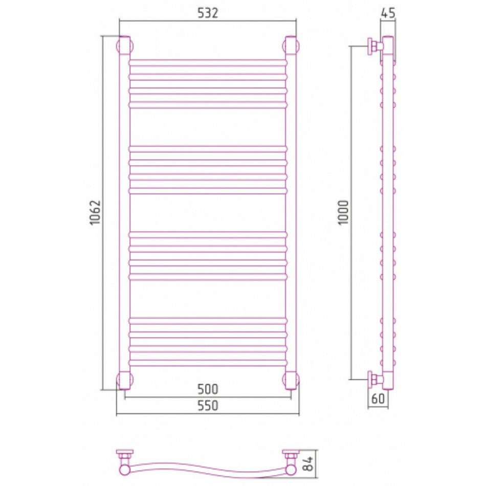 Полотенцесушитель водяной Сунержа Флюид+ 31-0222-1050, высота 100, ширина 50 см, универсальное подключение, цвет матовый черный
