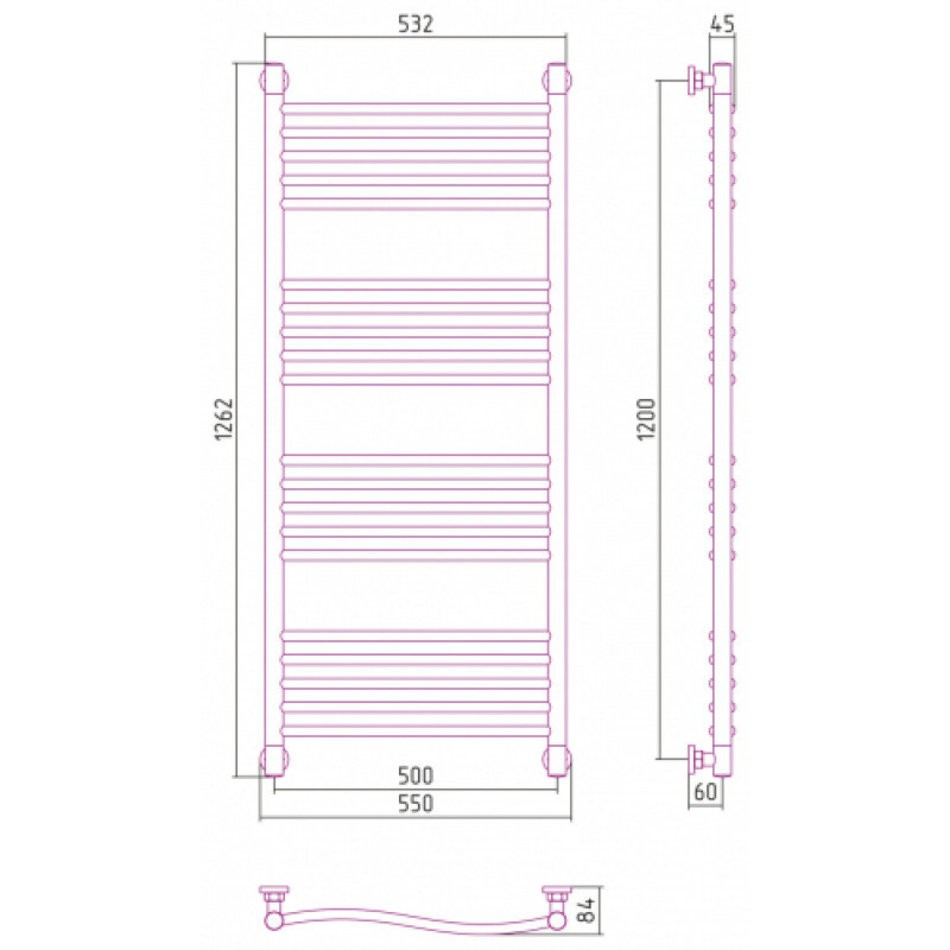 Полотенцесушитель водяной Сунержа Флюид+ 31-0222-1250, высота 120, ширина 50 см, универсальное подключение, цвет матовый черный