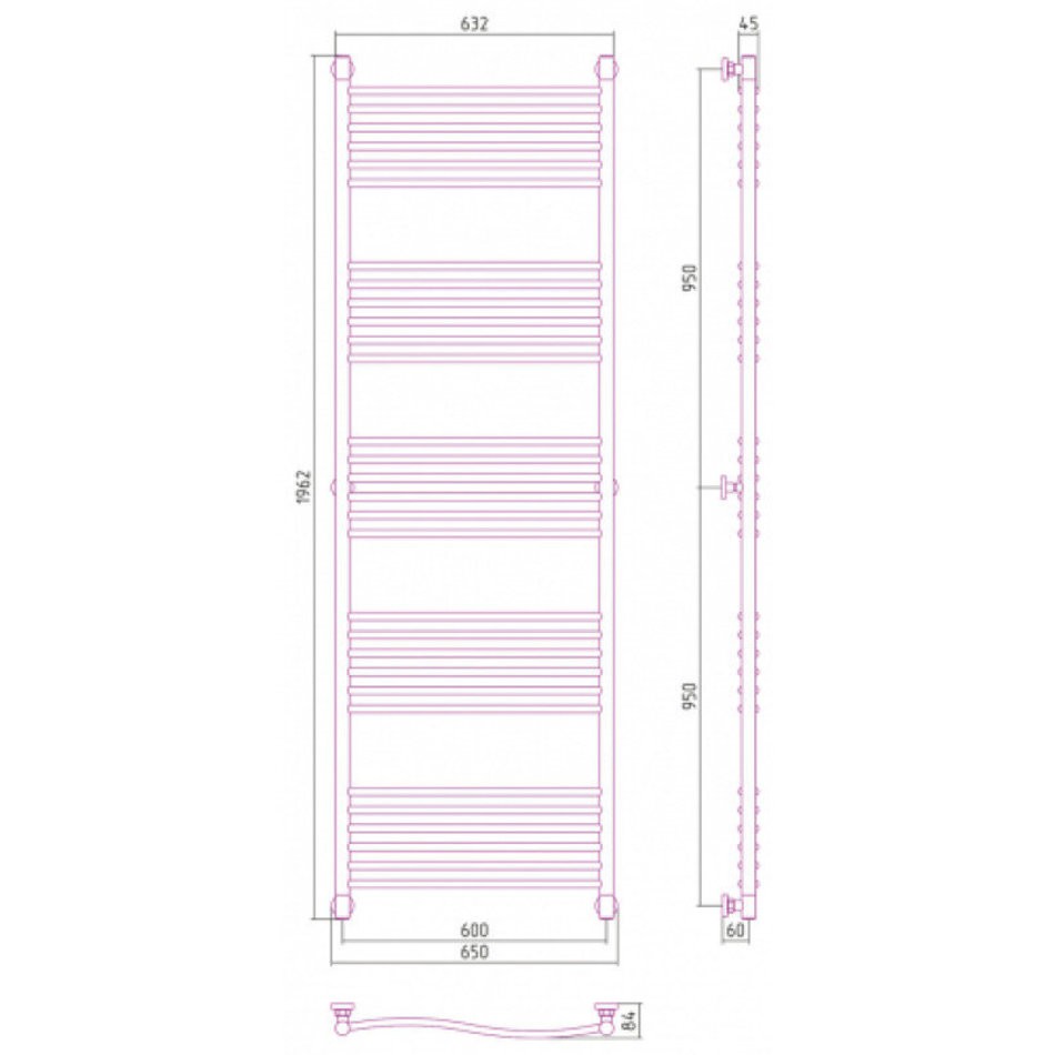 Полотенцесушитель водяной Сунержа Флюид+ 31-0222-1960, высота 190, ширина 60 см, универсальное подключение, цвет матовый черный