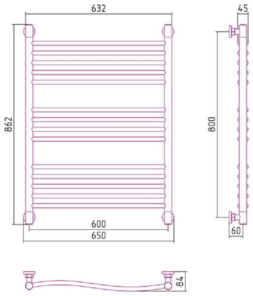 - Внешние габариты (высота х ширина х глубина) (мм) 862 х 650 х 84