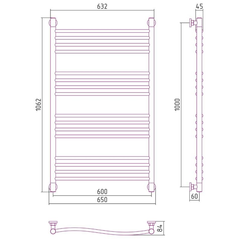 Полотенцесушитель водяной Сунержа Флюид+, высота 100, ширина 60 см, цвет шампань, 020-0222-1060