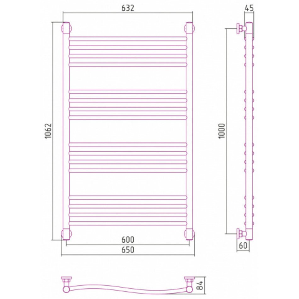 Полотенцесушитель водяной Сунержа Флюид+, высота 100, ширина 60 см, универсальное подключение, цвет состаренная бронза, 05-0222-1060