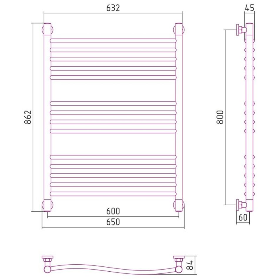 Полотенцесушитель водяной Сунержа Флюид+, высота 80, ширина 60 см, цвет шампань, 020-0222-8060